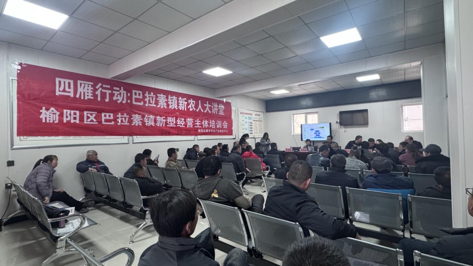 3月13日上午,由镇政府与榆阳区现代农业产业园区、陕西明杰数字科技有限公司联合主办的“新农人大讲堂”培训会在巴拉素村精彩呈现,区畜牧技术推广站副站长李鹏飞围绕《肉牛市场分析与羊传染性胸膜肺炎防治》专题进行授课,镇村相关负责人,种植户、农机手“头雁”等60余人齐聚一堂,共同参与这场农业技术盛会,区现代农业产业园区管委会副主任刘王叶受邀出席。