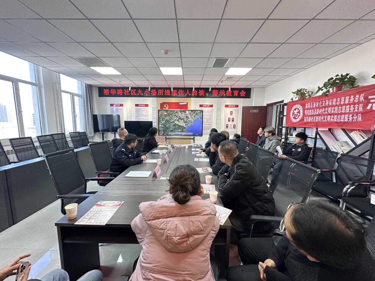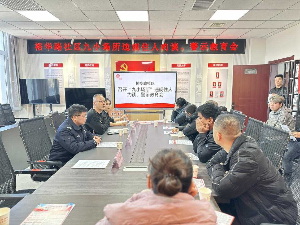 为深刻吸取近期各地火灾事故教训,切实防范化解辖区九小场所消防安全突出风险,坚决杜绝“小火亡人”事故发生,12月24日,裕华路社区联合高新区消防大队、明珠路派出所,集中召开辖区九小场所违规住人专项约谈暨警示教育会,辖区沿街商铺、小餐饮、小加工坊等20余家九小场所负责人参会。