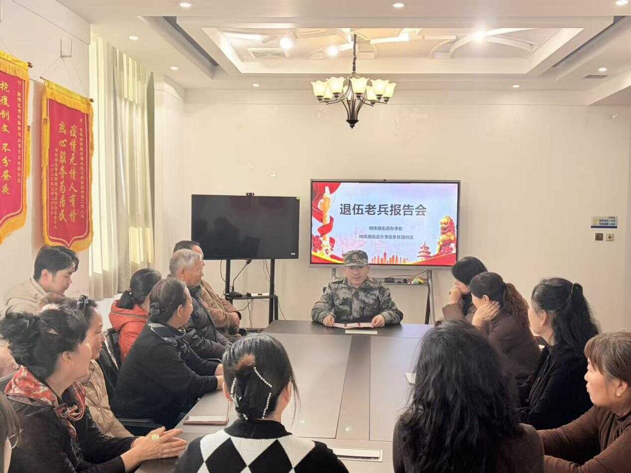 退伍老兵报告会上,老兵代表黄伟结合自身服役经历,讲述了在部队艰苦训练、保家卫国的难忘岁月,分享了退伍后扎根基层、服务群众的责任担当。一句句朴实的话语、一个个感人的故事,让在场居民深刻感受到军人的忠诚与奉献,现场掌声此起彼伏。