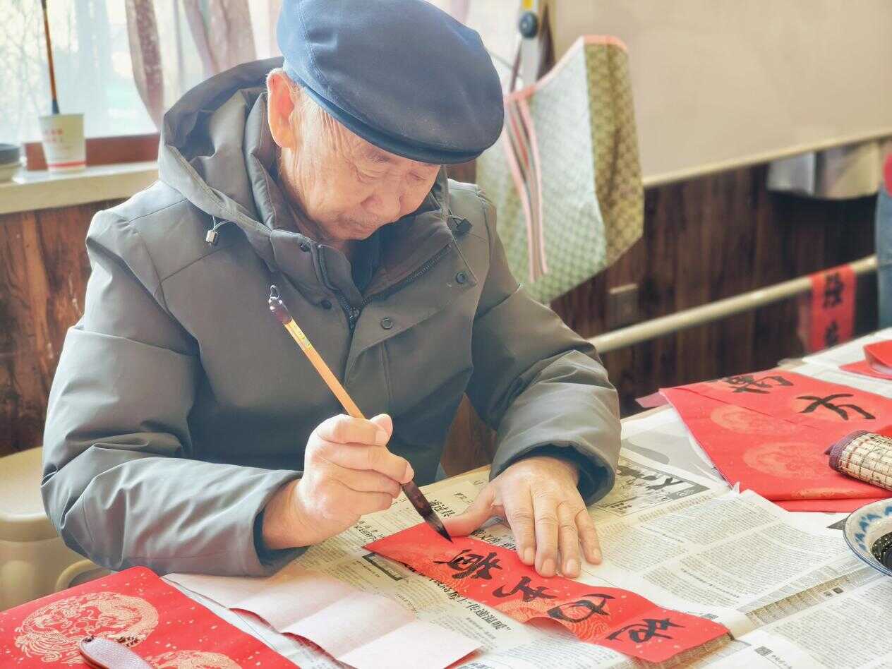 书法院的老师与学员们挥毫泼墨,一笔一画尽显功底;辖区热爱书法的老人与孩子们也纷纷提笔上阵,在纸上写下对新年的美好期盼,六年级小朋友李雨星别出心裁,创作了一批风格各异、画有骏马图案的福字,有的灵动飘逸、有的沉稳大气,有的憨态可掬,将“马到成功”“马上有钱”的吉祥寓意与福字巧妙融合;居民刘大爷饶有兴致地回忆起旧时过年习俗,提写了“抬头见喜”等对联。不少年轻居民发现,老人笔下的“台”字并没有提手旁,都好奇地询问缘由。刘大爷笑着解释,“抬头见喜”是民间老辈流传下来的传统写法,取安稳、端庄、喜气常在之意。一字之差,藏的是老辈人对年俗、对文字的记忆与传承。