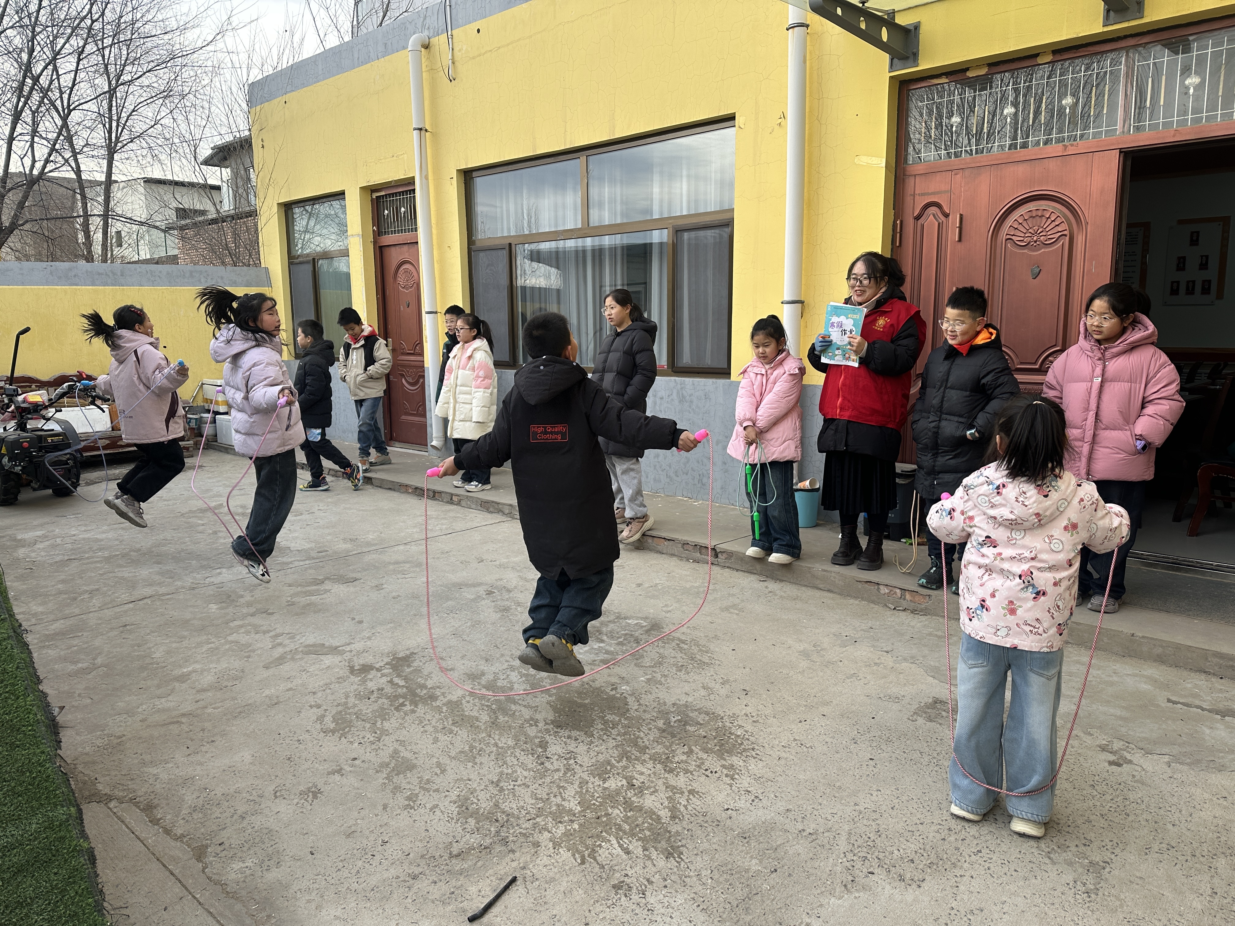 作业辅导结束后,趣味跳绳运动如期开展。在爱心妈妈的组织带领下,孩子们手持跳绳跃动起来,跳绳在空中划出优美弧线,欢声笑语充满整个活动场地。大家或单人跳跃、或分组比拼,在挥洒汗水的过程中锻炼体能、释放活力。爱心妈妈们全程陪伴鼓劲,既纠正孩子们的跳绳姿势,又时刻关注安全,让运动成为课后放松的绝佳方式,实现“劳逸结合”的假期成长理念。