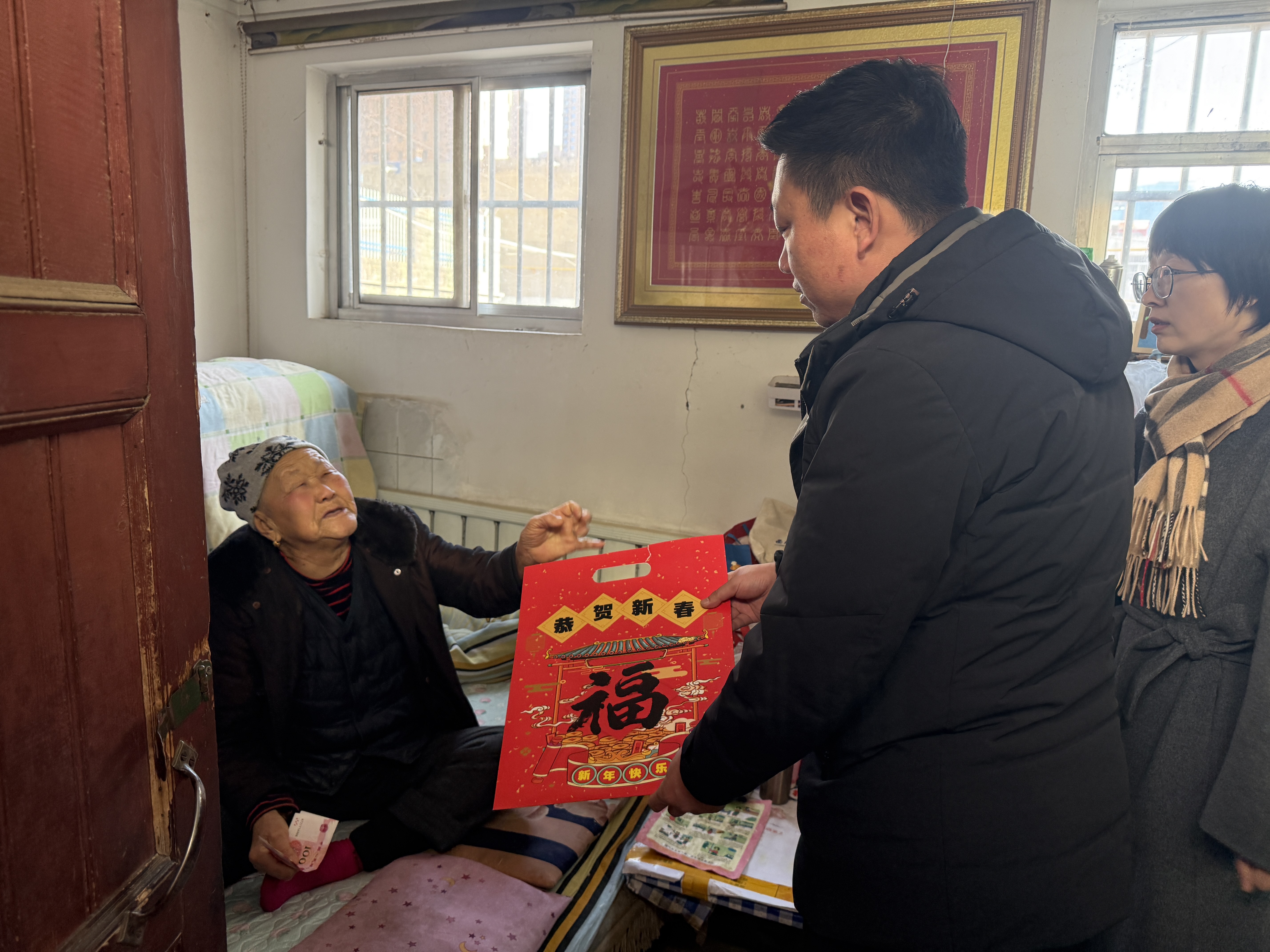活动开始,社区工作人员、西安交大一附院榆林医院代表向在场的困难群众表达了诚挚的问候和新春的祝福,随后,举行了简朴而温馨的慰问品发放仪式。工作人员将承载着浓浓关怀的米、面、粮油等逐一送到困难家庭手中,与他们亲切交谈,详细了解其近期生活状况与实际困难,鼓励他们保持积极乐观的生活态度。受慰问群众脸上洋溢的笑容和连连的道谢,成为了现场最动人的画面。考虑到部分高龄、独居或行动不便的困难居民,社区与医院还组织了入户慰问小分队,将慰问品和新春祝福直接送至他们家中,让温暖“零距离”。
