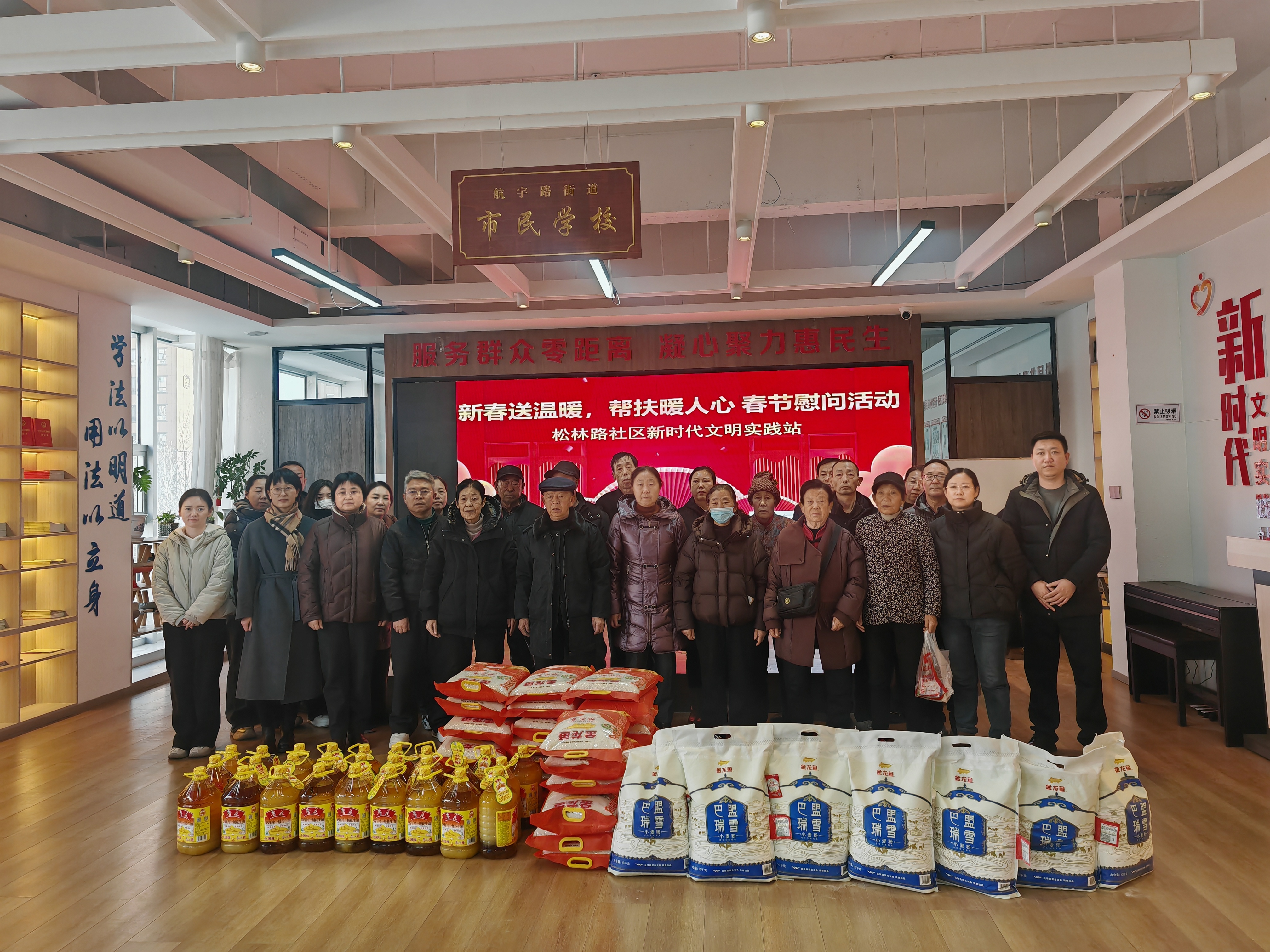 马年新春将至,情暖困难群众。为让社区困难家庭过上一个欢乐、祥和、温暖的春节,2月6日下午,航宇路街道松林路社区联合辖区双报到单位西安交大一附院榆林医院,在社区便民驿站一同举办了“新春送温暖,帮扶暖人心”春节慰问活动。