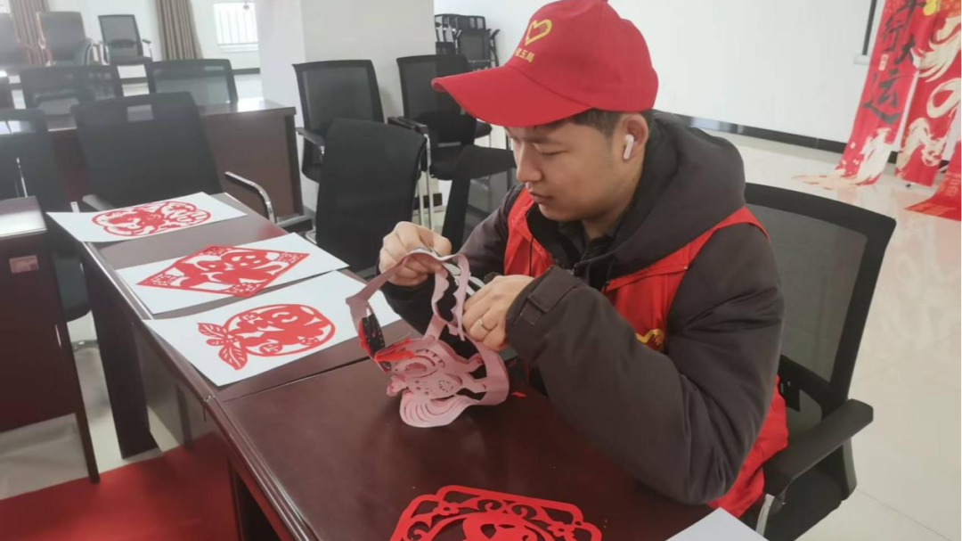 非遗剪纸体验区巧手传情。红纸翻飞、剪刀灵动,在老师指导下,大人小孩齐动手,剪出福字、窗花、生肖等精美纹样,指尖传承民俗技艺,一纸一剪皆是年味与祝福。