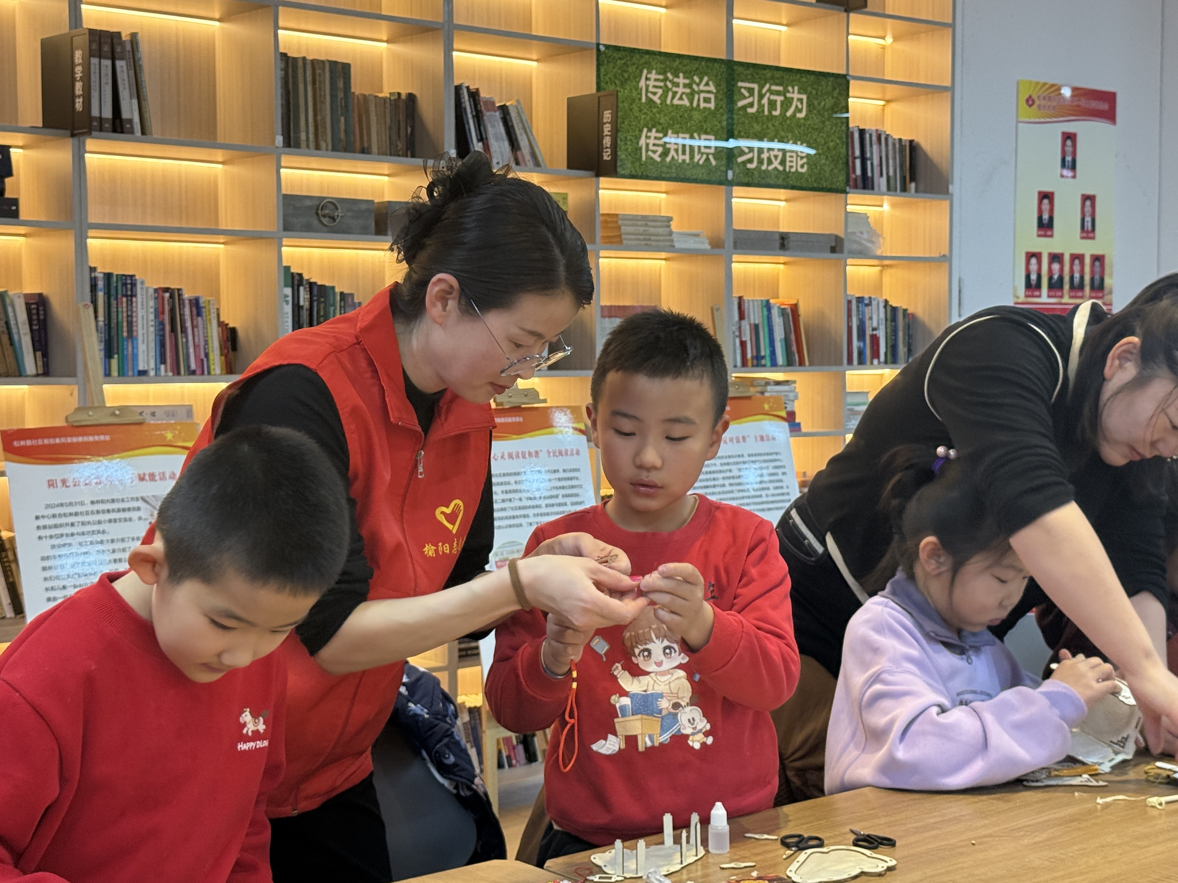 经过近一个小时的精心制作,一盏盏灯笼变得五彩斑斓、充满童趣。随后,志愿者为每组家庭发放了LED小灯,孩子们小心翼翼地将小灯放入灯笼内,按下开关的瞬间,温暖的灯光洒落下来,映照在孩子们惊喜的笑脸上。“哇,我的灯笼亮了!”“妈妈你看,小兔子的眼睛发光啦!”欢呼声此起彼伏,活动室内仿佛变成了一片璀璨的灯海。