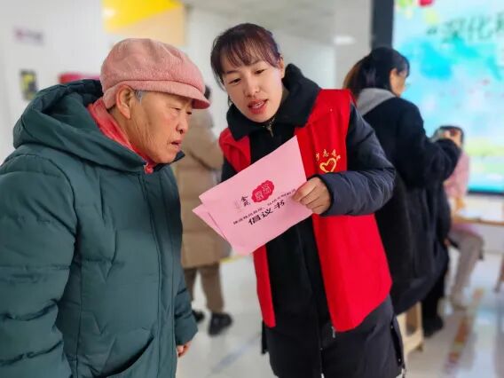 社区志愿者为居民讲解“抵制迷信邪教、崇尚科学”