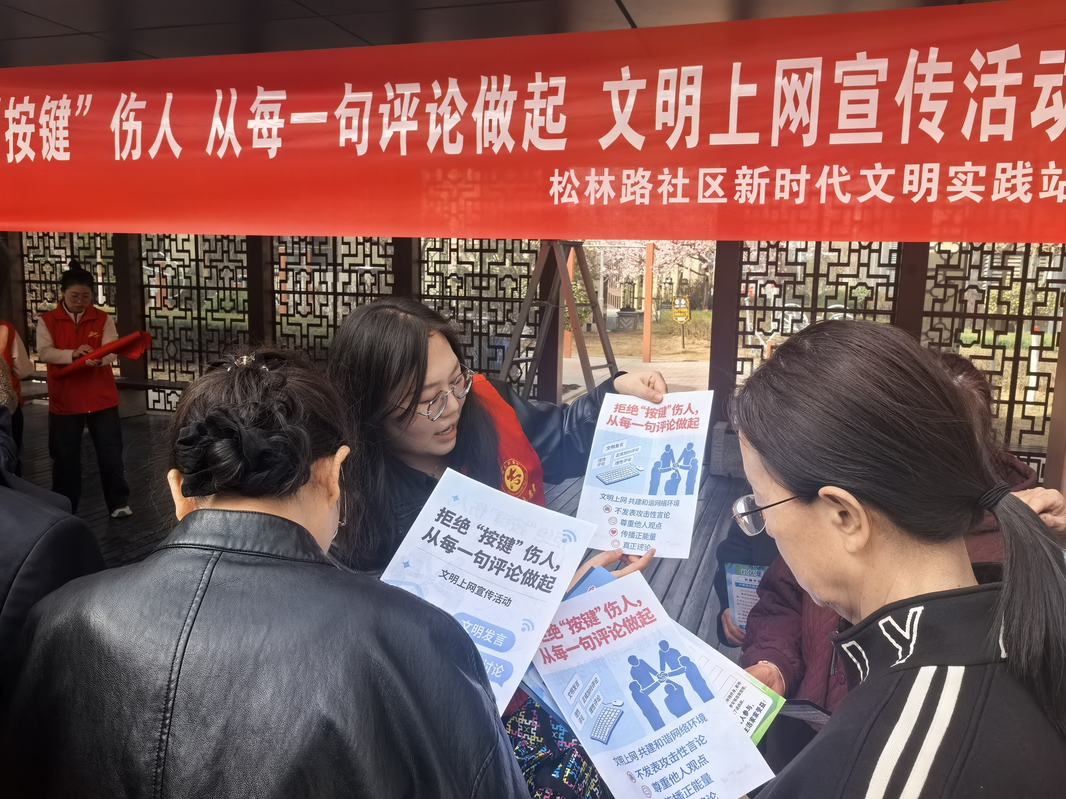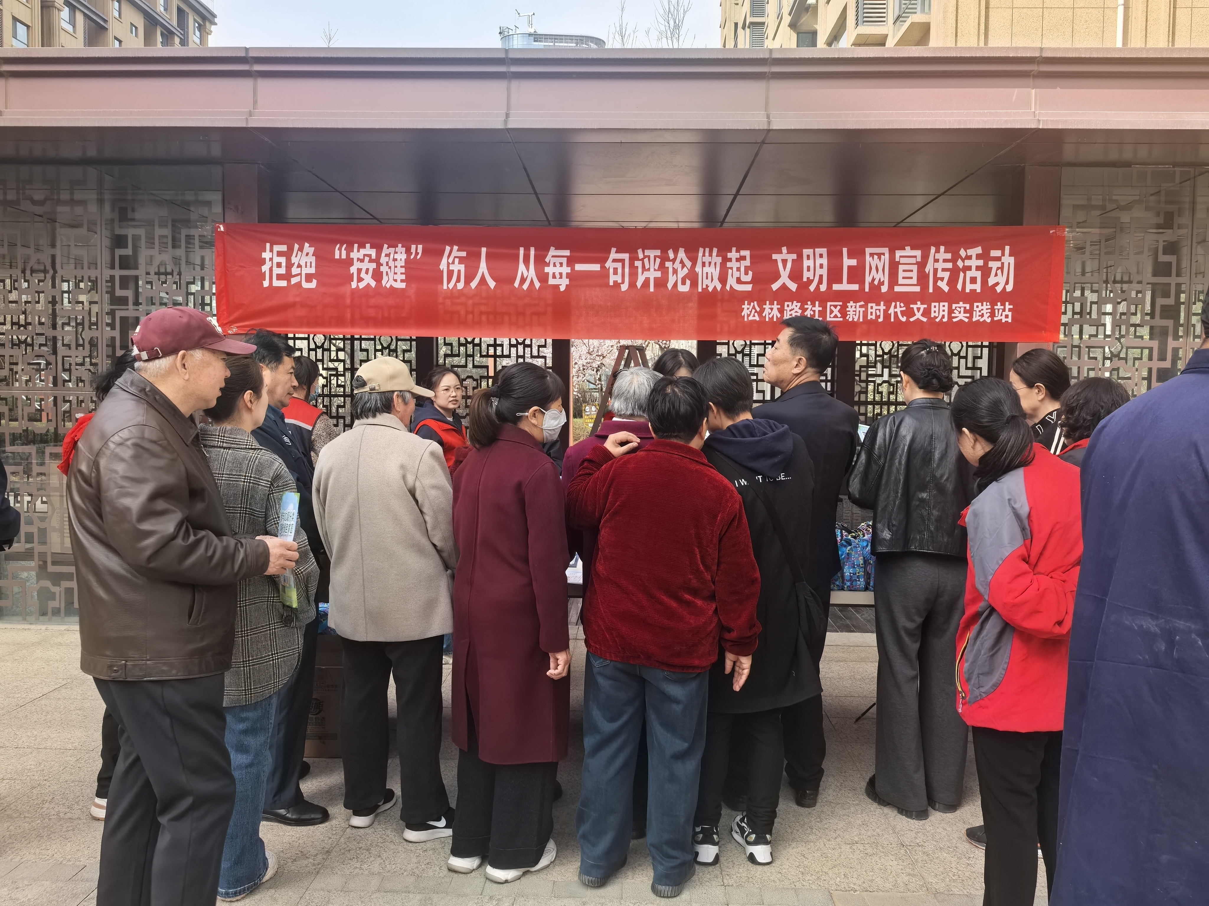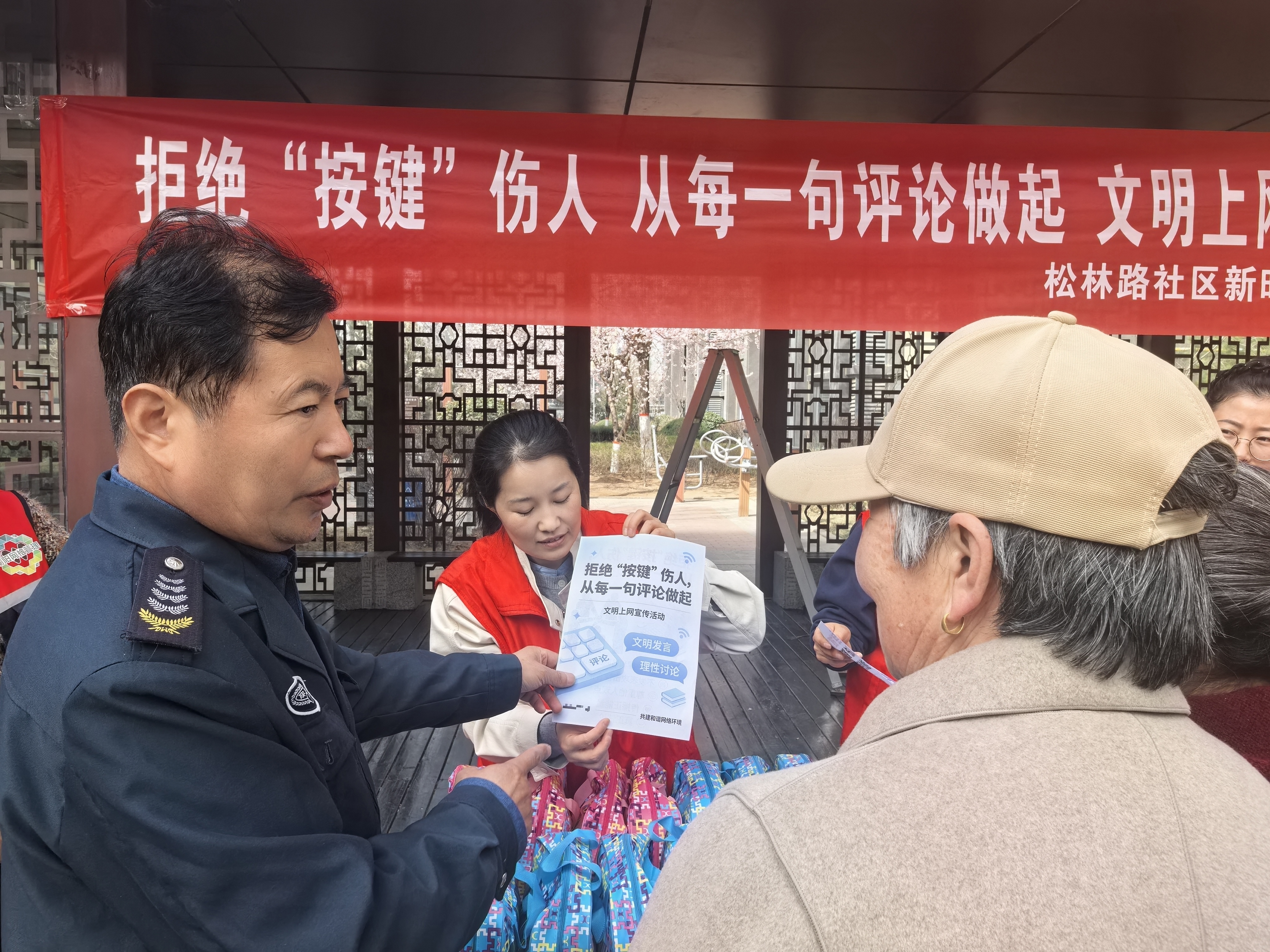 为抵制网络暴力,弘扬网络文明新风,3月25日上午,航宇路街道松林路社区组织开展了“拒绝‘按键’伤人,从每一句评论做起”文明上网主题宣传活动。活动吸引了辖区党员、居民、青少年及网络爱好者广泛参与。
