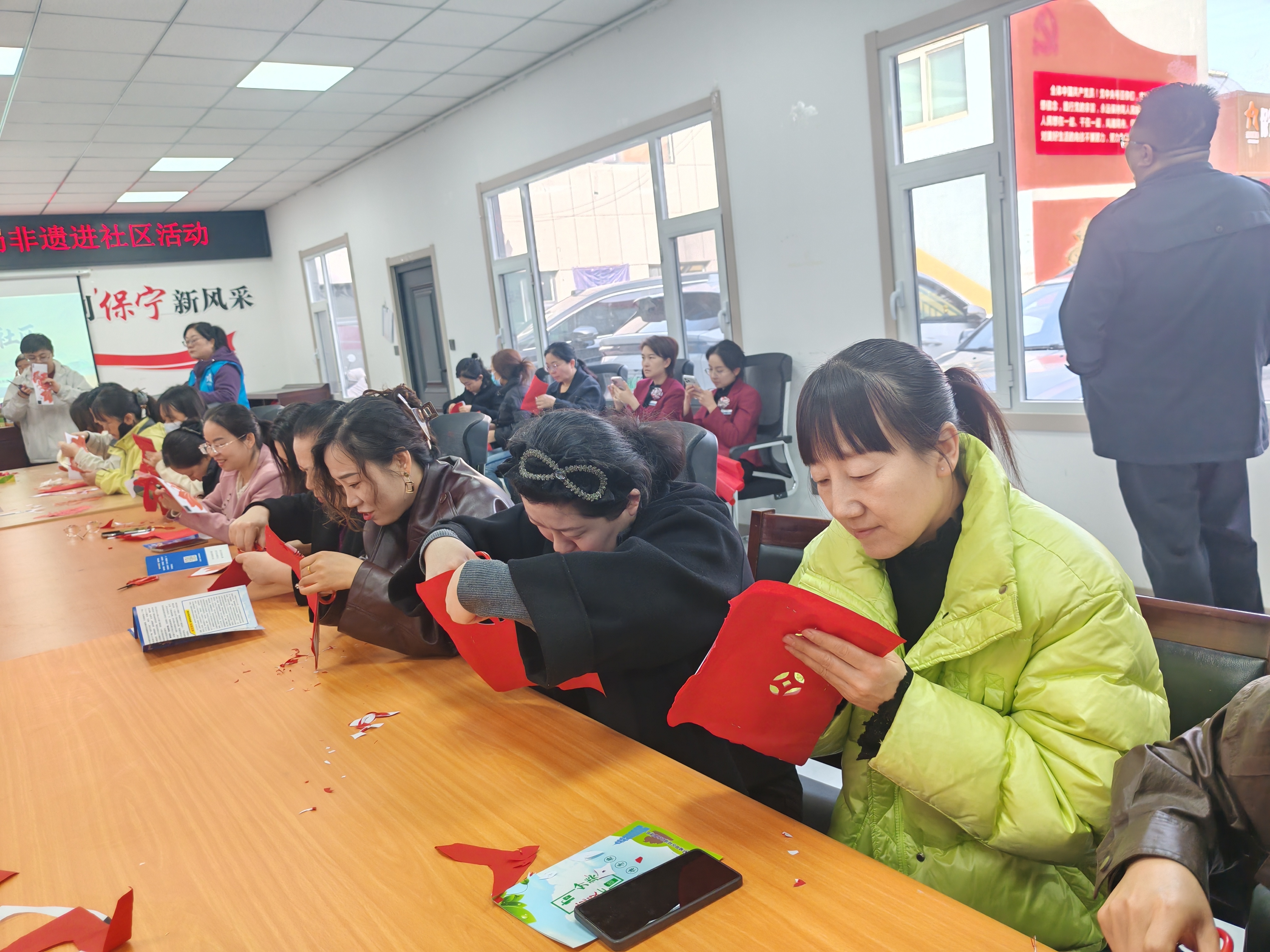 为传承中华优秀传统文化,让非遗技艺在社区落地生根、浸润民心,近日,青山路街道保宁路社区新时代文明实践站联合榆林文旅,在社区便民服务驿站开展“非遗剪纸进社区”主题活动。本次活动特别邀请陕北剪纸非遗传承人亲临授课,吸引辖区居民踊跃参与,大家共赴一场指尖上的非遗之约,在红纸与剪刀的碰撞中,于方寸之间感受传统剪纸艺术的独特魅力。