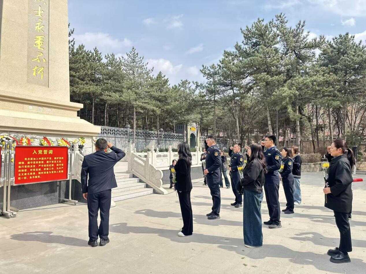 随后,在鲜红的党旗下,全体党员高举右拳,重温入党誓词。“我志愿加入中国共产党……”铿锵有力的誓言在陵园上空回荡,宣示着党员干部继承先烈遗志、不忘初心、牢记使命的坚定信念。
