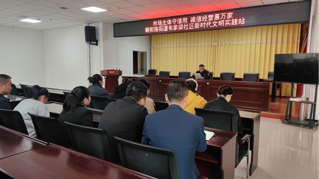为深入推进社会信用体系建设,规范辖区市场经营秩序,强化市场主体依法经营、诚信经营意识,切实保障消费者合法权益,4月3日上午,韦家梁社区联合辖区市场监管所组织开展“市场主体守信用 诚信经营惠万家”主题宣讲活动,辖区个体工商户、药铺、汽车4S店及其他小微企业代表、社区工作人员共计20余人积极参与,在专业解读与互动交流中凝聚监管共识、筑牢诚信根基,共筑文明和谐的社区商业生态。