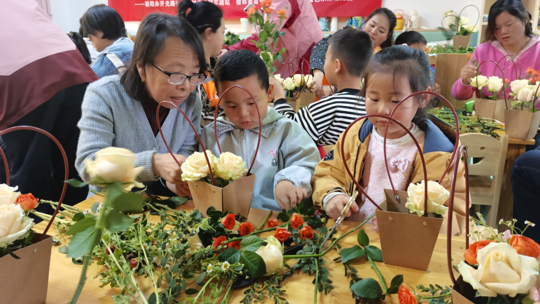 在非遗体验环节,亲子插花与面花品鉴活动同步开展。花艺老师现场讲解清明插花的文化寓意与基础技巧,孩子们和家长一起,将一朵朵鲜花搭配造型,插入防水手提花袋中,制作出饱含童真与敬意的花艺作品,既锻炼了动手能力,也让孩子们在创作中学会表达思念与敬意。另一边,非遗面花展示区热闹非凡,形态各异的燕子、花朵造型面花,不仅色彩鲜亮、工艺精巧,更承载着祈福纳祥的美好寓意,孩子们围坐在一起,近距离观赏面花技艺、品尝传统风味,在欢声笑语中了解陕北民俗文化,感受非遗的独特魅力。