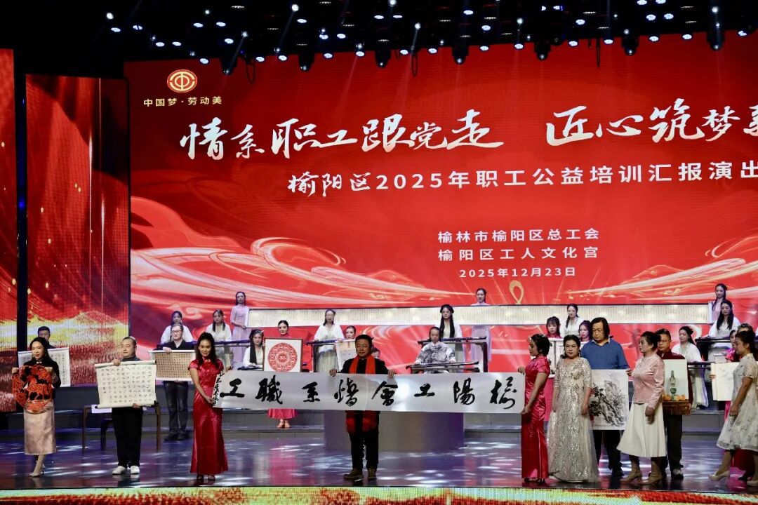 为深入学习贯彻党的二十届四中全会精神,传承中华优秀传统文化,丰富职工精神文化生活,12月23日,榆阳区总工会举办2025年职工公益培训汇报演出。区委书记杨政,区委副书记王新刚,市总工会副主席马敏,区人大常委会副主任、区总工会主席刘欣,副区长惠生卫,区政协副主席田嫦娥参加活动。