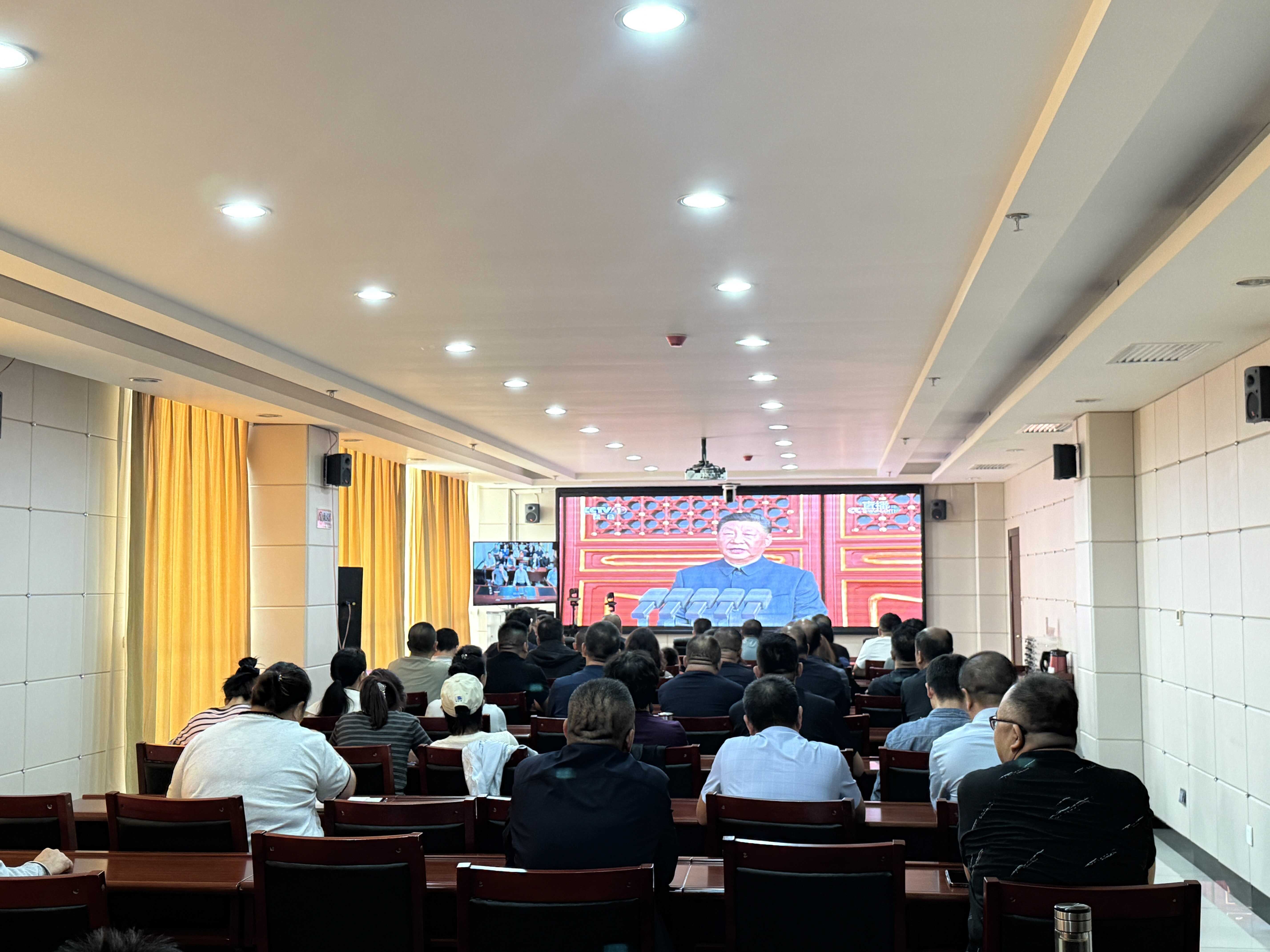 榆阳分局组织系统全体人员在六楼会议室集中收看纪念大会,认真聆听习近平总书记的重要讲话,直播画面中,礼炮轰鸣,国旗护卫队迈着整齐的步伐护送国旗入场,全场起立,奏响国歌,气氛庄严肃穆。随后,各个受阅方队依次通过天安门广场,徒步方队步伐矫健,装甲方队气势磅礴,空中梯队翱翔天际,展示了我国强大的国防力量和军队现代化建设的卓越成就。