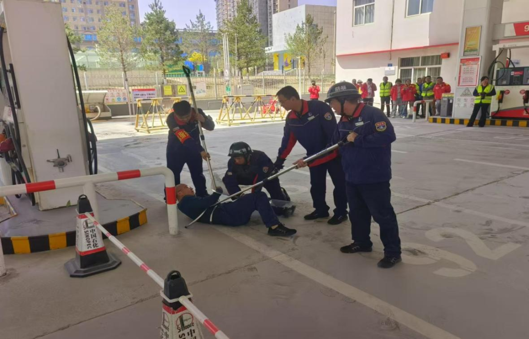 培训期间还进行了加油站消防反恐实战演练,模拟了加油站加油、卸油时,突发火灾和恐怖袭击处置情况,工作人员迅速展开灭火救援与反恐防暴行动,展现了良好的应急联动效能和协同作战能力。