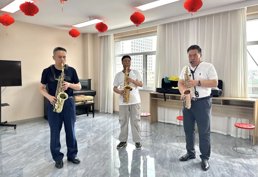 62岁的李望勤退休后便迷上了吹萨克斯,从最初的“单打独斗”到逐渐组建了十几人的团队,社区提供的这个平台,让他们在交流专业技巧的同时,也收获了珍贵的友情。“每次来到这,就像回到了上学的时候。这里不仅有宽敞的教室供我们练习,还有专业音响,体验感很好。每天和大家练练琴、聊聊天,感觉心情特别好,整个人的状态也更年轻了!”李望勤说。