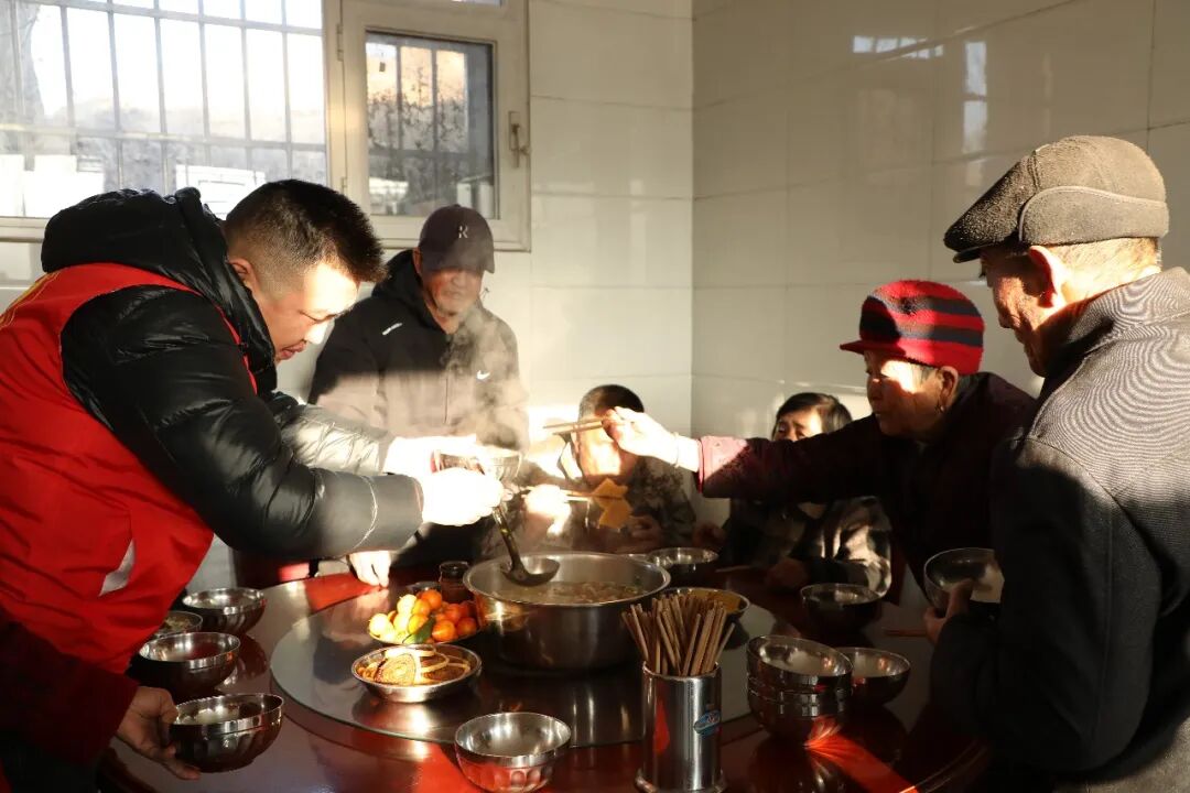 “今天我吃了爱心人士为我们做的羊肉粉汤、油馍馍,我们全村人聚在一起,就像过年一样,特别开心。”村民王富山说。