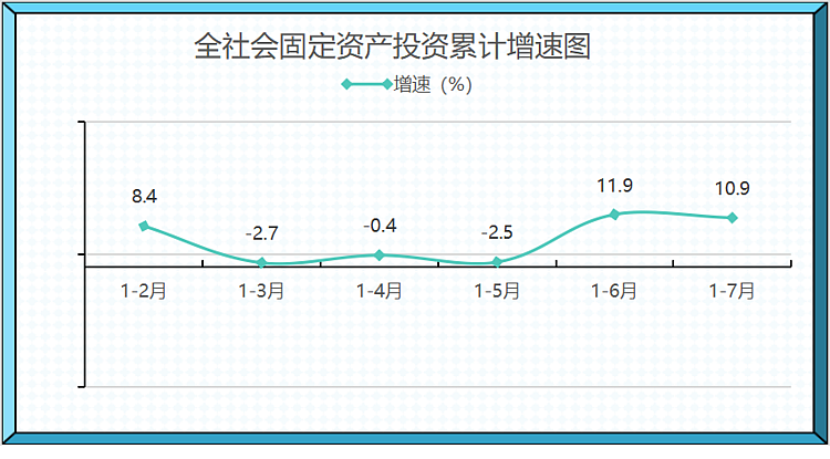 1-7月,全区全社会固定资产投资同比增长10.9%。从投资领域看,下降1.8%;民间投资增长42.8%;基础设施投资下降47.4%;房地产开发投资增长9.6%。分产业看,第一产业投资增长288.5%;第二产业投资下降2.5%;第三产业投资增长140.6%。