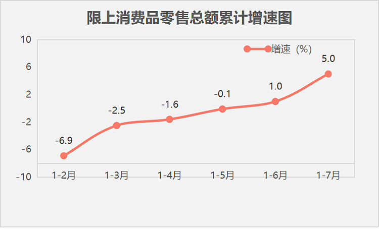 1-7月,全区限上消费品零售额实现76.30亿元,同比增长5.0%,增幅较1-6月提升4.0个百分点。