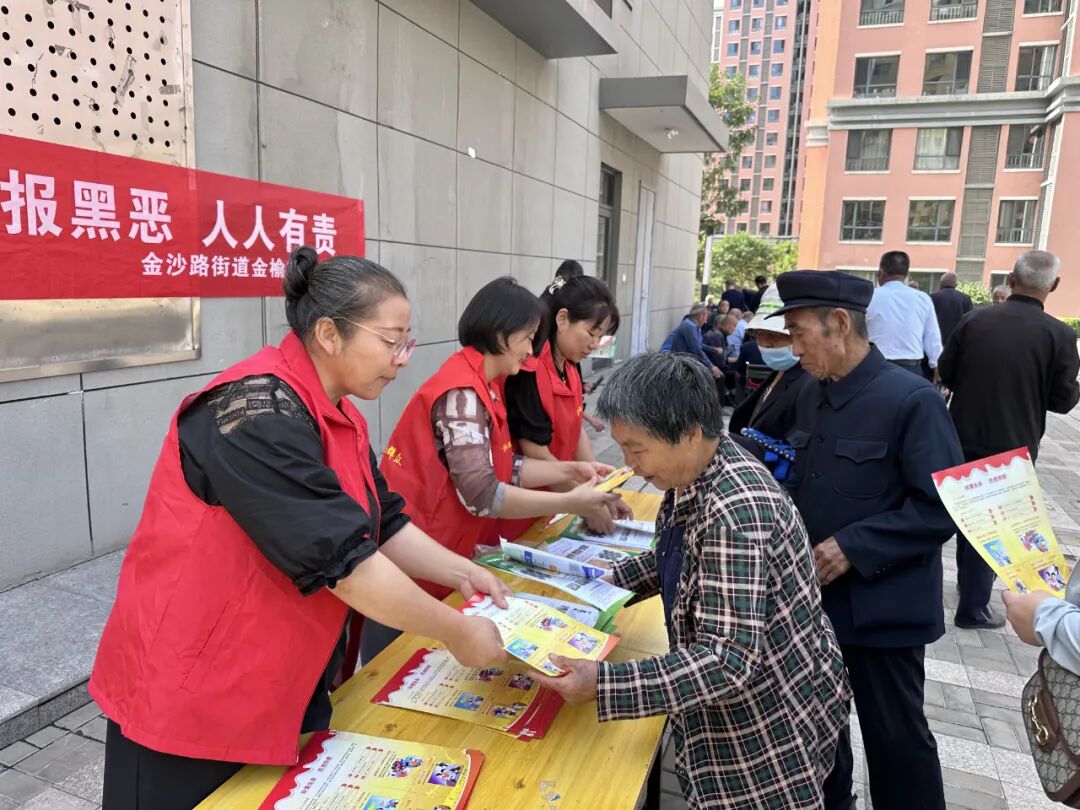为进一步推动常态化扫黑除恶工作的深入开展,有效遏制黑恶势力的滋生,全面提高辖区居民的安全感。近日,金沙路街道金榆社区开展常态化扫黑除恶宣传活动。
