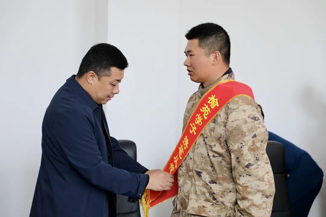 活动现场,入伍新兵代表、退役大学生代表进行交流发言,榆林学院领导分别为入伍新兵佩戴绶带、颁发纪念品,希望他们能够继承和发扬榆林学院的优良传统,为学院争光,为国家添彩。