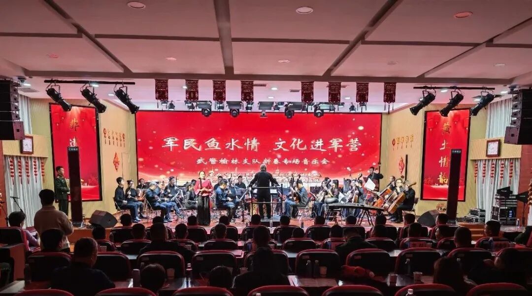 新春将至,军营暖意融融。榆阳区文艺工作团民乐队走进武警榆林支队,举办“军民鱼水情 文化进军营”新春专场音乐会。在婉转秦音与激昂乐声中,武警榆林支队官兵及军属齐聚一堂,共迎新春、共话深情,凛冽寒风中的军营因这场文化盛宴洋溢着浓浓的年味与暖意。